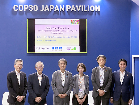 제30차 유엔기후변화협약 당사국총회(메이저 토토 사이트)가 11월 10일부터 22일까지 브라질 벨렘에서 열렸습니다 경단련에서는 데즈카 히로유키 국제환경전략실무그룹 회장, 요시바 다카오 지구온난화대책실무그룹 부회장이 참석해 일본 경제계의 그린 트랜스포메이션(GX)과 기후변화 대응 노력에 대해 이야기하고 일본 정부 대표단 및 각국 경제단체와 의견을 교환했다
